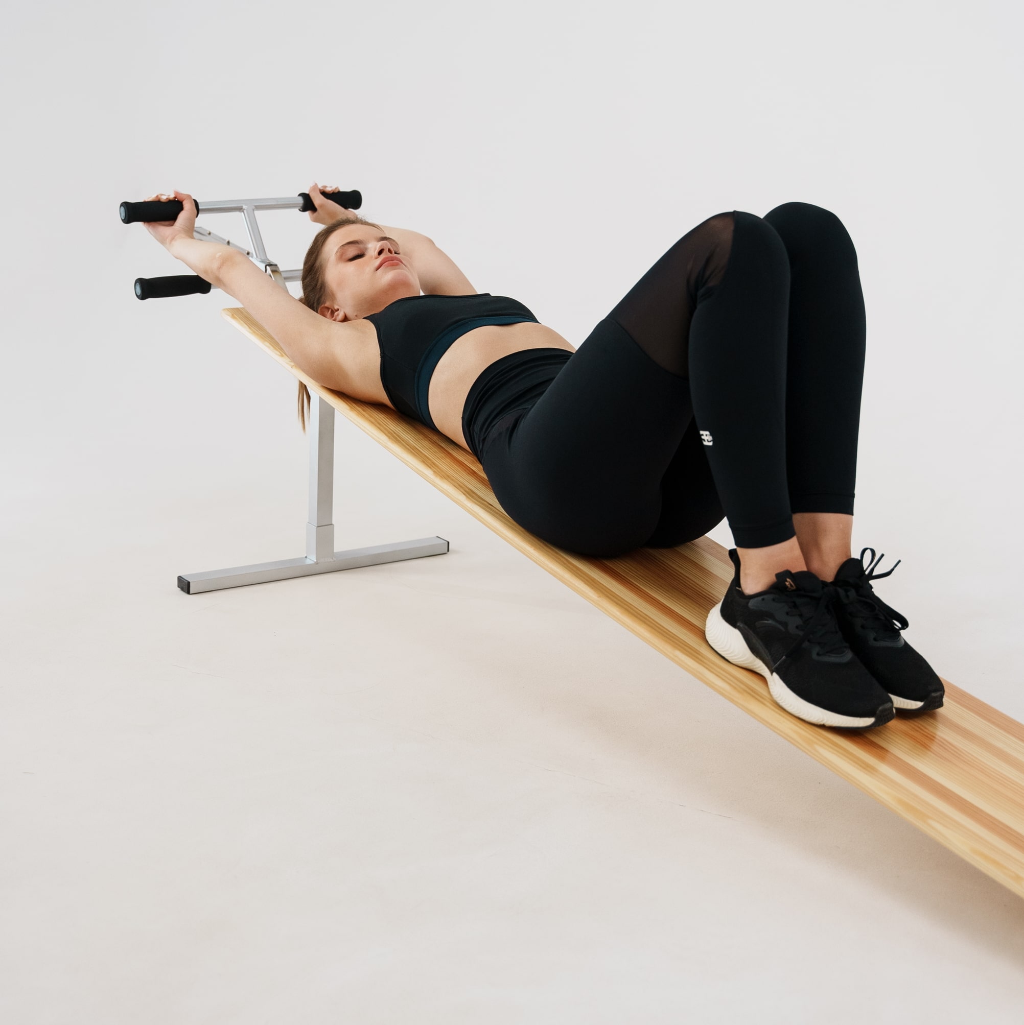 Он очень прост в использовании, можно устанавливать без крепления к стене. Угол наклона регулирует нагрузку упражнений.